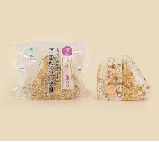 白だしで炊いたスーパー大麦ともち米入りのご飯で、たらこマヨネーズを包み、表面にごまをつけた。だしごはんとたらこマヨネーズの相性が抜群な一品。