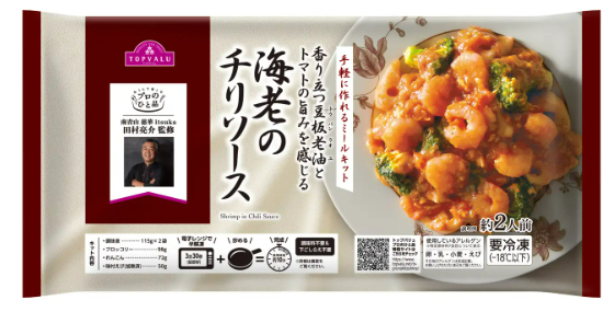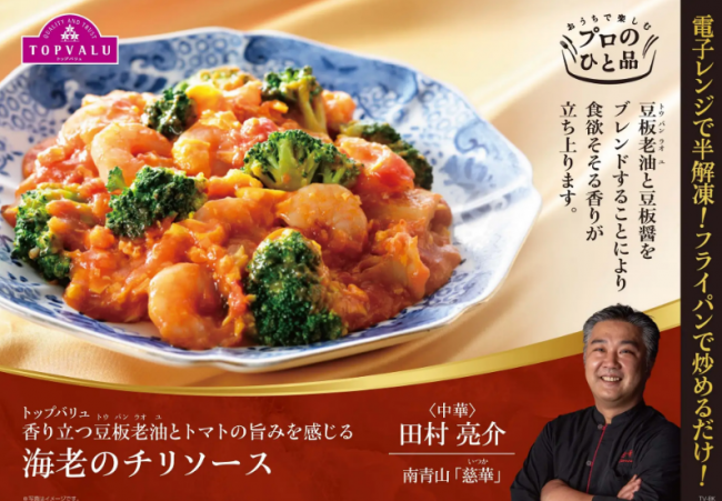 今回発売する2商品は、「ミシュランガイド東京2021」一つ星店、東京南青山「慈華」の田村亮介シェフが監修した「トップバリュ 香り立つ豆板老油とトマトの旨みを感じる海老のチリソース」と「トップバリュ コク深い香酢ソースをたっぷり絡めて味わう黒酢酢豚」の2品で、「イオン」「イオンスタイル」「マックスバリュ」等、全国の約1500店舗で展開する。