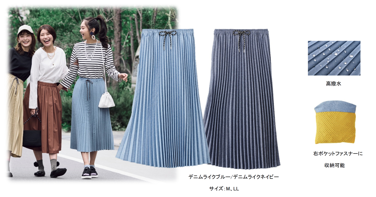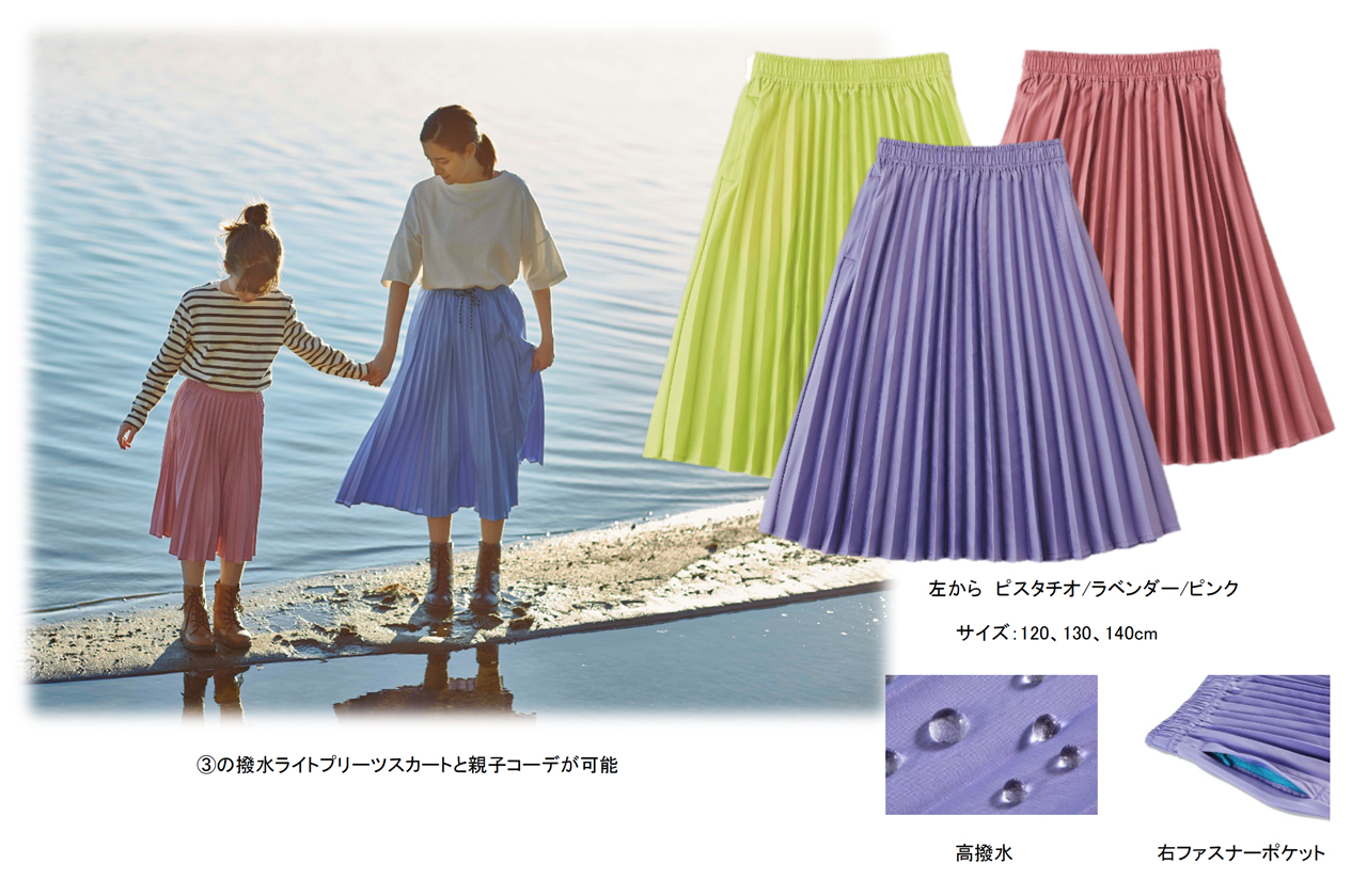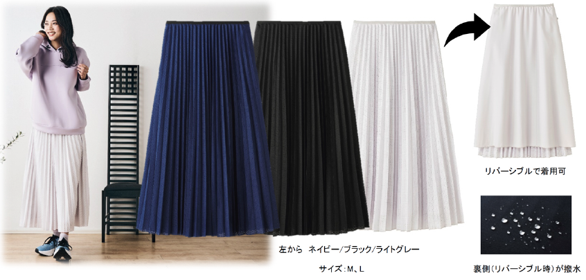 (株)ワークマン(群馬県伊勢崎市、小濱英之社長)は、「撥水ライトプリーツスカート」に新しく2バージョンとジュニアサイズ(オンラインストア、#ワークマン女子店限定)を追加した。