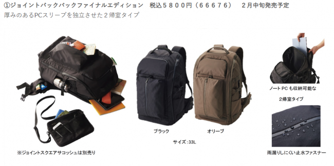 同カテゴリーは2年前に同社の公式アンバサダーと本格リュックを共同開発したことがきっかけ。当時発売された「ジョイントバックパック ハイカーズエディション」(税込4900円)は6万点を超えるヒット商品となっている。