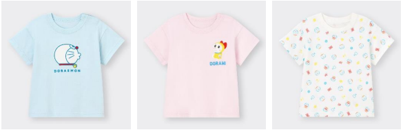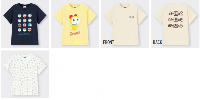 キッズ・ベビーは、ひみつ道具やキャラクターにフィーチャーした、子ども達がわくわくするようなプリントのグラフィックTを展開。キッズとベビーでお揃いで着用できるTシャツも登場する。