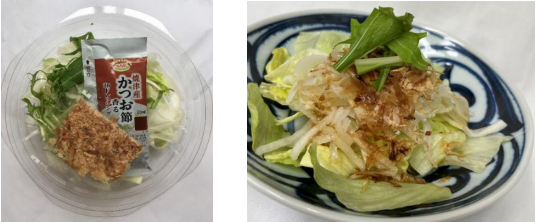 「遠州潮風新たまねぎサラダ」に使用した「遠州潮風新たまねぎ」は、水はけがよい、海に面した砂地の畑で、海からの潮風を常に受けた浜松市篠原町周辺で育てられた。みずみずしく辛味が少ないのが特長だ。焼津産鰹だしを使用した静岡県内産の和風ドレッシングで食べるシンプルなサラダに仕立てた。本体価格198円。