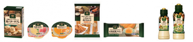 今回発売の商品は、おつまみやちょっとした菓子にぴったりな揚げおかきや塩バターサブレを始め、国産果肉を使用したゼリー、くちどけなめらかアイスなど初夏に向けてぴったりな商品ラインアップとなった。
