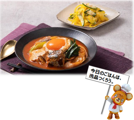 主菜は「サバの旨みを味わう本格豆腐チゲ」で、脂ののった「eatime 銚子港水揚げの原料を使用したさば水煮缶」を使用している。さば缶をスープまで無駄なく使い、具材をたっぷり加えて満足感のある逸品に仕上げた。