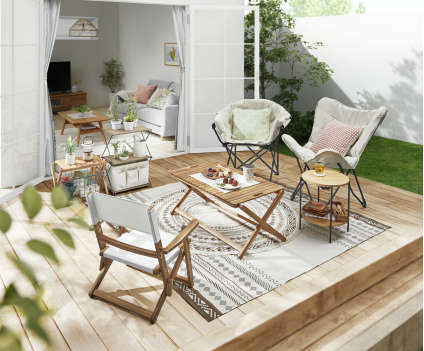 「バタフライチェア」 5990円、「⽊製折りたたみチェア」3990円