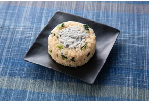「茨城県水揚げしらすと菜飯のおむすび」は、茨城県内にある柴沼醸造の醤油「紫峰」を使用しただし飯に、茨城県の沖合で水揚げされた身がふっくらとしたしらす、茨城県産の食感の良い小松菜を合わせた。価格は150円。