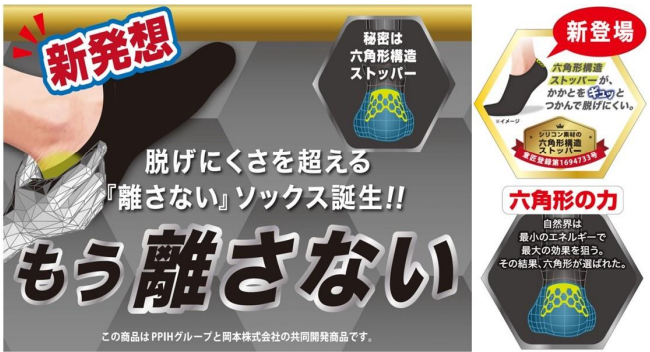 (株)ドン・キホーテ(東京都目黒区、吉田直樹社長)は、老舗の靴下メーカー岡本(株)と共同開発した新商品「もう離さないソックス」を3月に発売した。