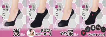 靴下の岡本により意匠登録が行われている、この構造を採用した同商品は、ドン・キホーテ限定での発売となる。