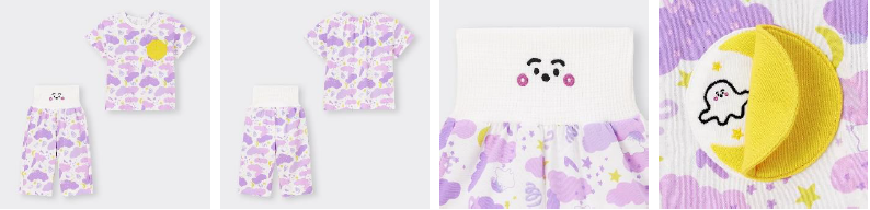 「GU baby」と民放初の赤ちゃん向け番組「シナぷしゅ(テレビ東京)」は、本当に赤ちゃんのためになる服をつくりたいという想いから、“赤ちゃんの感性を育むベビー服” を共同開発し、2021年6月にコラボレーション第1弾を発売した。