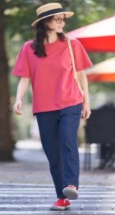 レディスでは1枚でもスタイリッシュに着こなせるベーシックTシャツやカラーアンクルパンツ、メンズではリサイクルポリエステルを採用した5分袖Tシャツや、動きやすくシルエットをキレイに見せるストレッチチノパンツなどを取り揃える。