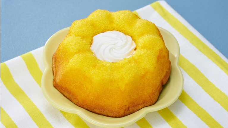 グーゲルフップフは中央に穴が開いた円錐形の「クグロフ型」を使って焼き上げる焼き菓子で、クグロフとも呼ばれる。しっとりと焼き上げたレモン風味のスポンジケーキに、広島県産「瀬戸内レモン」を使った爽やかな味わいのレモンクリームを絞った。価格は119円。