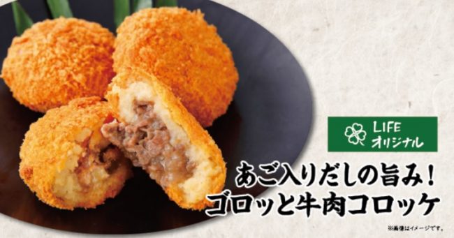 (株)ライフコーポレーション(大阪本社:大阪市淀川区、東京本社:東京都台東区、岩崎高治社長)は、惣菜売場で販売しているコロッケを「あご入りだしの旨み!ゴロッと牛肉コロッケ」としてリニューアルした。1個入りで160円(税抜き、以下同じ)、2個入りで298円。ライフ292店舗で販売している。