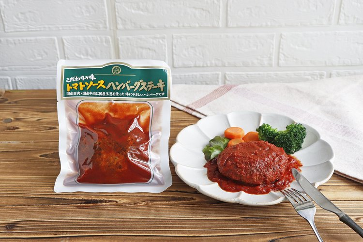これまでの「美味安心」ハンバーグシリーズは味がついておらず、好みの味付けをして食べてもらうというコンセプトだった。今回は、さらに手軽に食事の準備ができるよう、温めるだけで食卓に出せるトマトソース味を開発した。