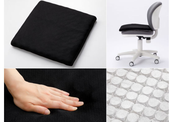 5月中旬からは、ソファの座り⼼地を再現した「ポケットコイルを内蔵シートクッション」(1990円)を販売している。ベッドのマットレスなどで使われるポケットコイルを内蔵していて、床の上やイスの座⾯など、お尻の下に⼀枚敷くだけでソファの座り心地が体感できるシートクッション。