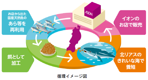 今回は、店舗で国産天然魚を商品化する際に出るあらなどの未利用部位を回収し、弓ヶ浜水産大槌養殖場で育てられているサーモンの配合飼料に活用する。鮭の養殖に適した三陸特有のリアス式海岸と、この飼料などで育まれた「岩手大槌サーモン」を使用した刺身や寿司、海鮮丼など12品目を開発し、販売する。