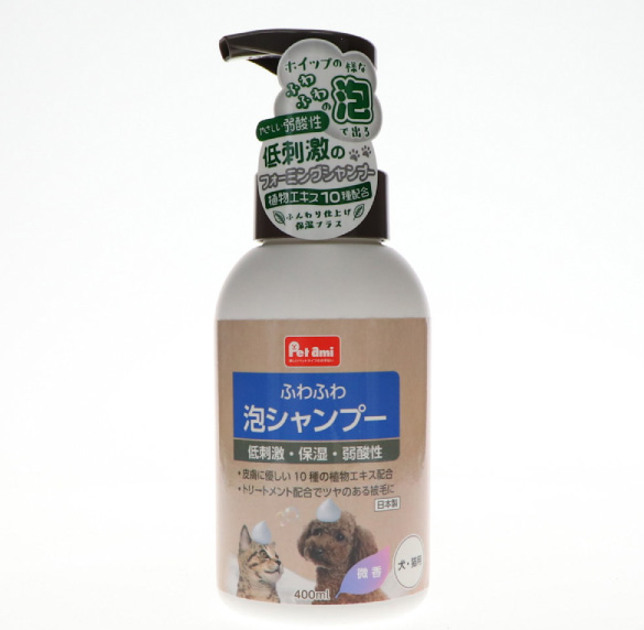 手軽に使えるので散歩後の手足の部分洗いにも便利。弱酸性、皮膚に優しい10種の植物エキス配合で優しく洗い上げることができる。また、トリートメント成分配合でダメージ被毛をケアしながら静電気を防ぐ。