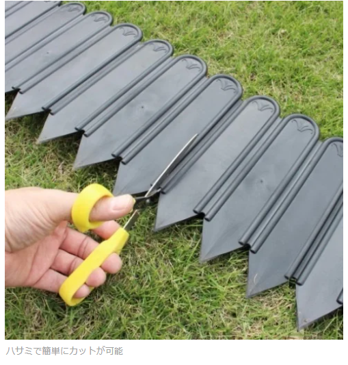 1枚のシートのように連結した材料を簡単にカットし、直線でも曲線でも好きな形の花壇をつくることができる。ゴムハンマーなどで地面に打ち込むだけ。
