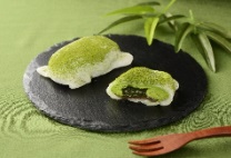 もちもちとした食感の求肥に、宇治抹茶の香りと旨み、コク深い味わいが特長の抹茶クリームと、濃厚でとろりとした味わいの抹茶ソースを入れ、天面に抹茶パウダーをまぶした。クリーム、ソース、パウダーに、「森半」の茶師がブレンドしたオリジナルの宇治抹茶を使用している。