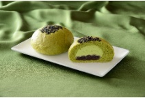 「森半」の茶師がブレンドしたオリジナルの宇治抹茶を、生地、ホイップクリームに使用している。抹茶を練りこんだパン生地のなかに、甘さ控えめに仕立てた粒あんと、程よい苦みと旨みのある抹茶ホイップクリームを入れた。生地の天面には、黒ゴマをのせ、味と食感にアクセントをつけた。