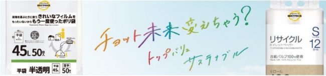 イオン(株)(千葉市美浜区、吉田昭夫社長)は、6月2日(金)から順次、資源循環型リサイクルの取り組みの一環で開発した「トップバリュベストプライス 荷物を運ぶ時に使う きれいなフィルムを もったいないからもう一度使ったポリ袋」と「トップバリュベストプライス リサイクルトイレットペーパー」を発売する。「イオン」「イオンスタイル」「マックスバリュ」など 全国約2700店舗で販売する。
