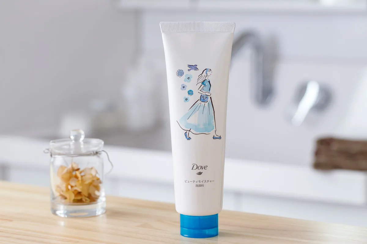「一歩踏み出す女性の応援」をコンセプトにした限定デザイン。「ダヴ」のシンボルカラーのブルーをベースに、前向きになれる色のバランスになっている。キャップの色もアトリエカインズ限定。特大サイズ270g入りで698円。協賛はユニリーバ・ジャパン・カスタマーマーケティング(株)。