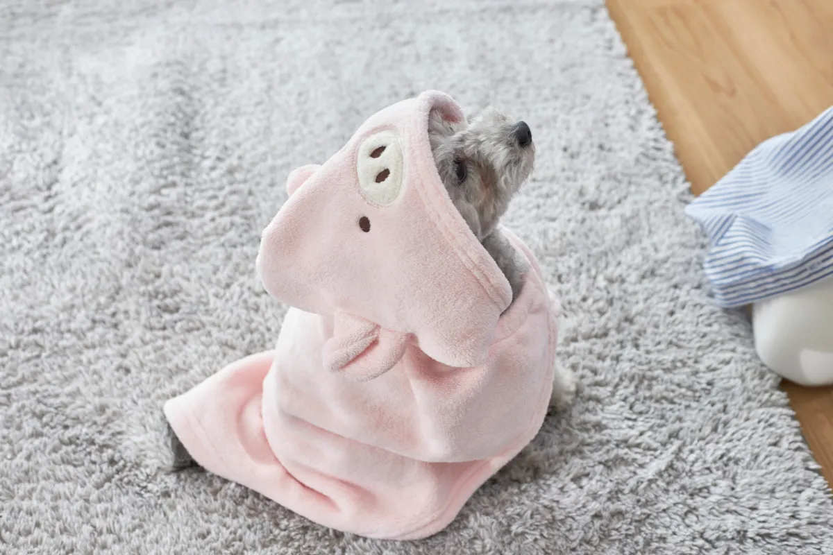 被せるだけで素早く吸水する速乾性に優れたマイクロファイバーを使用したペット用ローブ。超小型犬から小型犬・猫に対応したサイズで、シャンプー後や雨の日の散歩後に被せるだけで利用できる。イヌ、ネコ、パンダ、クマ、カエル、ブタの5種類、5カラーはオリジナルラインナップ。価格は1580円。協賛は(株)シービージャパン。