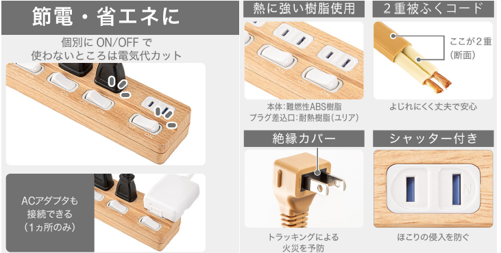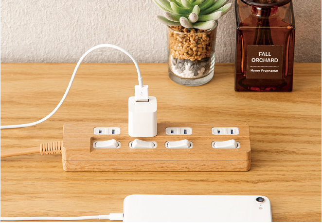 ニトリnews|インテリアに馴染む⽊⽬調の節電タップを発売
