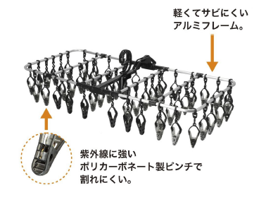 ②熱・紫外線に強いポリカボネート製ピンチなので、割れにくく、浴室⼲しも可能。