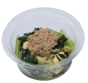 いつもの食事に美味しい野菜をブラスする「ベジタベライフ」を実現するメニュー。小松菜にツナを組み合わせ、ごま油などで和えた。カップタイプのサラダで、手軽に野菜を摂取できる。