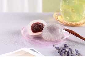 北海道十勝産の小豆「エリモショウズ」を使用したこしあんを、透明でもっちりとした生地で包んだ。