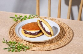 しっとりとしたどら焼き生地で、北海道十勝産の小豆「エリモショウズ」 を使用した甘さ控えめのあんこと、なめらかなホイップクリームを挟んだ。