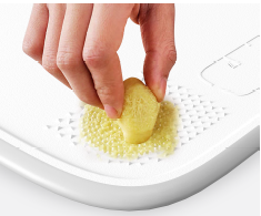 「滑り⽌め付き ⽴つ多機能まな板」の特長は以下の通り。