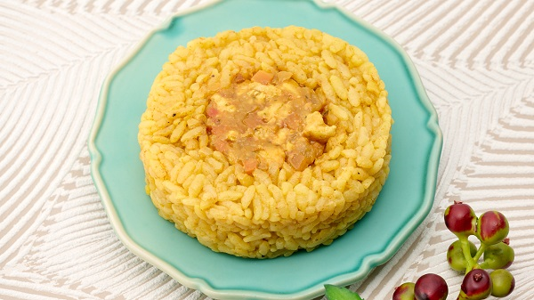 発酵バターとミルクで仕上げた濃厚な味わいのチキンカレー。辛すぎるのは苦手という人でも食べられるまろやかな辛さに仕上げた。価格は410円(税込み、以下同じ)。