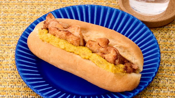 タンドリーチキンに玉ねぎを混ぜ込んだカレーソースを合わせ、ロールパンにはさんだ。スパイスがきいたチキンの旨味と、玉ねぎの甘さが引き立つカレーソースとの相性が抜群。価格は200円。