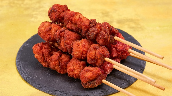 鶏肉の下味や衣にコチュジャンを使用した ‘’旨辛‘’ がクセになるから揚げを、食べやすく串に通した。店舗で揚げて、レジ横のファストフーズ売場で販売する。価格は1本当たり140円。