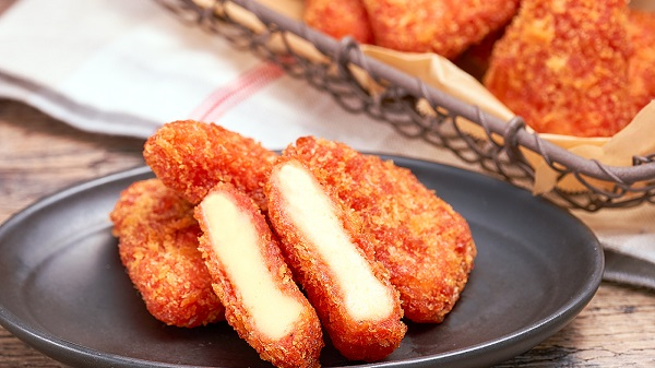4種のチーズ(クリーム、チェダー、ゴーダ、カマンベールパウダー)に、激辛のハバネロを混ぜこみ、フライにした。最初はチーズのコクのある香りと味わいが口に広がり、後から強烈な辛さが押し寄せてくる。4個入りで171円。