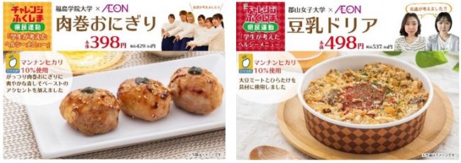 今回は「ヘルシーメニュー」のなかから、福島学院大学と郡山女子大学の学生が大塚食品(株)の「マンナンヒカリ」を使用して考案したメニューを、イオンが商品化した。