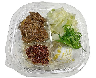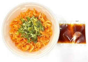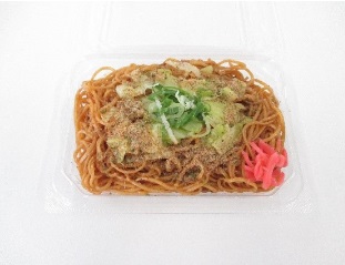 富士宮やきそばの有名店「うるおいてい」監修商品。国産小麦100%使用の麺を使用し、濃厚で甘辛いソースで仕上げた。400円。