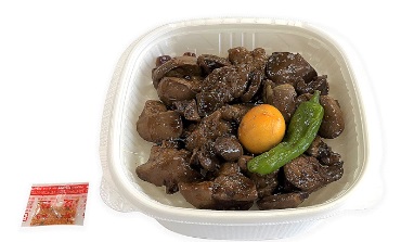 山梨県甲府市の郷土料理「鳥もつ煮」を丼にした。鳥もつ煮に欠かせない希少部位「キンカン」を使用。598円。
