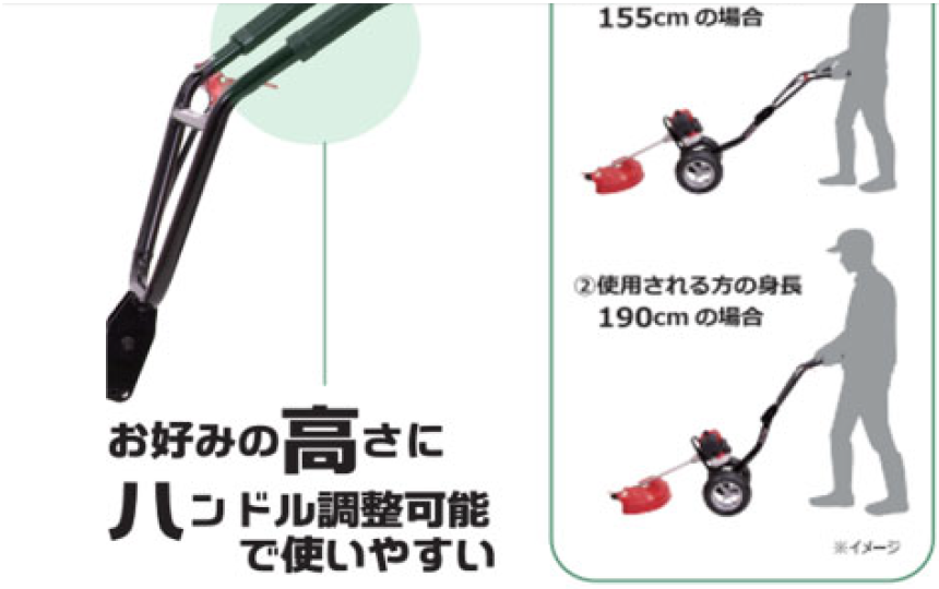 ハンドル部分のネジ穴を変えることで3段階の高さ調節ができる。使用者の身長に合わせて、使いやすい高さにカスタマイズすることができる。