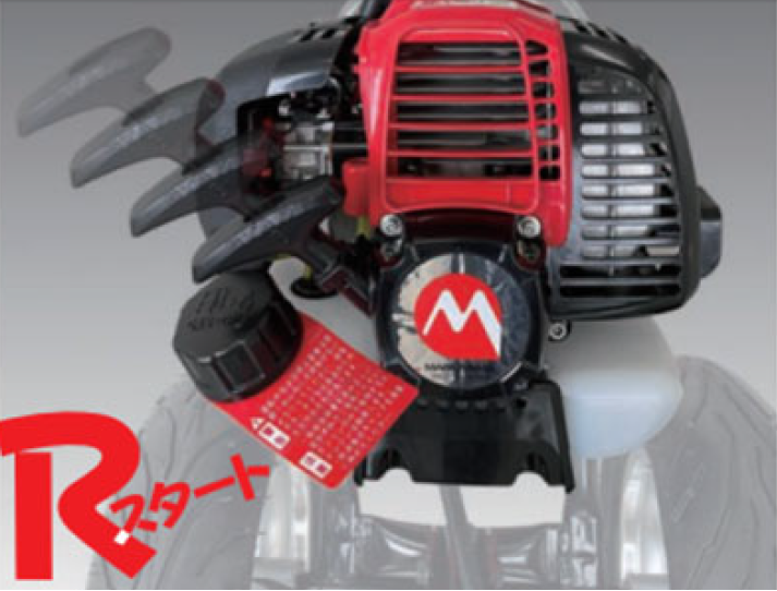 国内メーカーの丸山製作所の2サイクルエンジンを搭載しており、高出力なエンジンで、草絡みに負けないスムーズな作業性を実現した。また、従来のスタータにスプリングの力を利用するRスタートを採用することで、スプリングのアシストにより、軽い力でエンジン始動ができる。