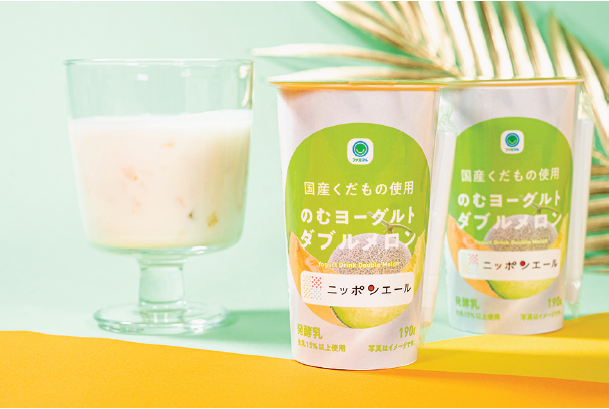 ファミリーマートでは 4月に「ファミマル」と「ニッポンエール」による初のコラボ商品「のむヨーグルトくだものミックス」を発売した。国産のくだものを手軽に楽しめると好評だったことから、今回第2弾として、アンデスメロンやクインシーメロンなどの国産メロンを使用した「のむヨーグルト」を発売することとなった。