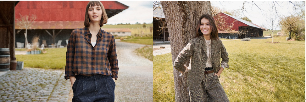 今期、イネスは自身のスタイルを確立させたルーツに立ち返った。彼女のワードローブに欠かせないのは20世紀初頭のフランスで日常的に使われていたワークウェア。コットンやウールなどの天然素材を使い毎日着られるタフさも兼ね備えている服を大切にしている。南フランスのニーム地方が発祥と言われているデニムは欠かせない素材のうちの一つ。ジーンズはもちろんのこと、ワンピースやジャケット、シャツなどで表現されている。ニットアイテムは、オレンジやレッドなど、自然を感じさせるカラーパレットになっている。