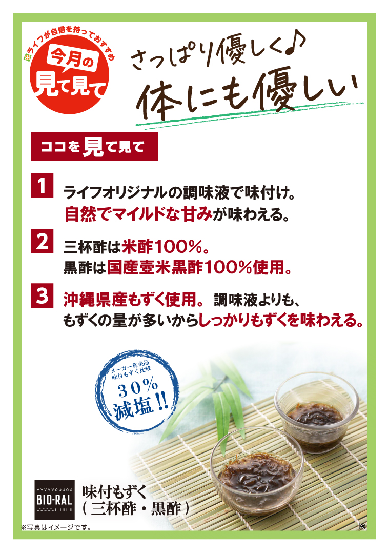ライフnews|水産売場で「BIO-RAL 味付もずく(三杯酢・黒酢)」販売