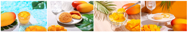 マンゴーのごろっとした果肉と、なめらかなマンゴープリンが特徴の『なめらか マンゴープリン』(270円 本体価格 以下同)や、クリームをしぼったシュー生地の中にマンゴーゼリーを混ぜ合わせたマンゴークリームが入った『ザクもち食感 マンゴークリームシュー』(180円)、その他『マンゴー杏仁大福』(148円)、『もっちりマンゴーわらび とろーりマンゴーソース』(250円)など、幅広い客層が楽しめるラインアップとなっている。