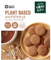「PLANT BASED ココアビスケット」は、やさしい甘さとココアの風味のバランスがよい。150円。