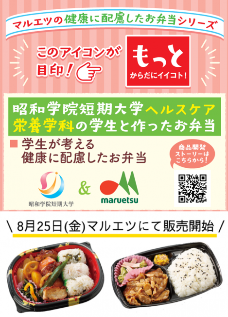 マルエツと昭和学院短期大学ヘルスケア栄養学科は、2022年8月に初となる産学連携を実施して、PFCバランスを考慮した「からだ想い弁当」3品を販売した。この取り組みは、学生がZ世代ならではの視点や発想を活かして学んだことを実践できるの場になっている。