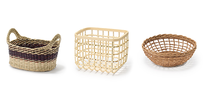 今回は、水草の一種であるシーグラス、生長の早い竹、ラタンの3素材を使用した商品を全40アイテム発売する。いずれもベトナム産で、熟練した編み手による手づくりの商品だ。独自の編み方で一つひとつていねいに編み上げられたバスケットは、素材の風合いが存分に活かされている。