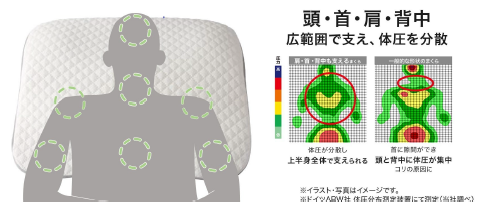 ニトリは「肩・⾸・背中も⽀える枕」は、⼤きなサイズで7点をしっかり⽀え、体圧を分散させることでからだへの負担を軽減する枕で、2023年2⽉に発売して以来、累計約20万個以上販売した。
