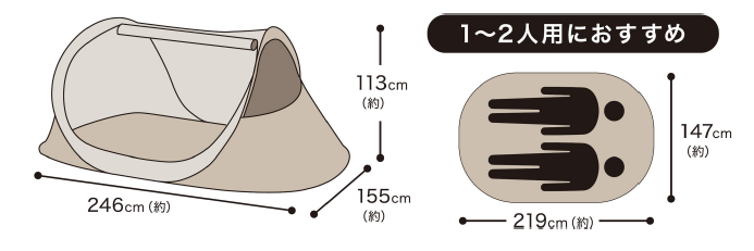 メッシュ部分はフルクローズすることができ、フライシートと併⽤すれば急な⾬にも対応できる本格的なテントになる。耐⽔圧2000mmの⽣地を採⽤している。税込み価格は1万4900円。